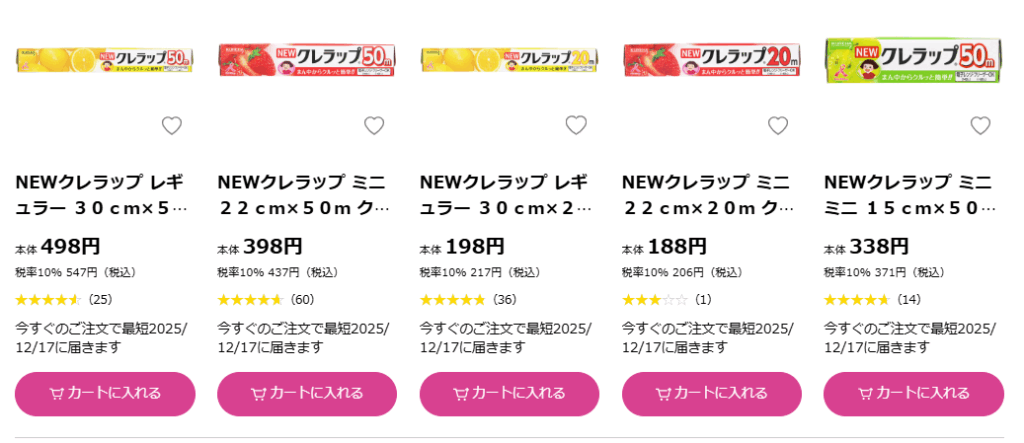 マツキヨにもクレラップやサランラップが売っています。
