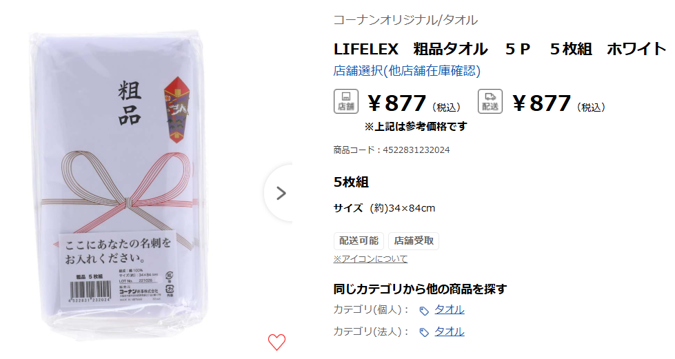 コーナンにも、引っ越し挨拶粗品が売っていました。