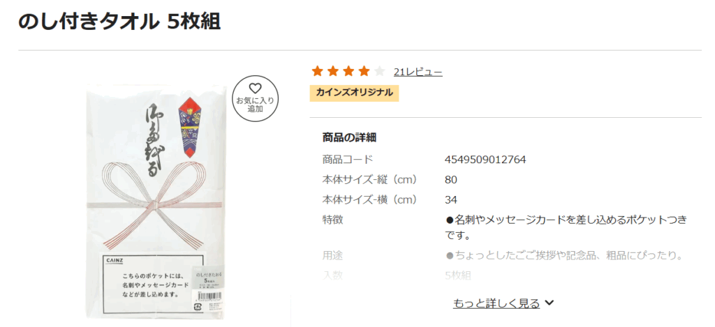 カインズにも、引っ越し挨拶粗品が売っていました。