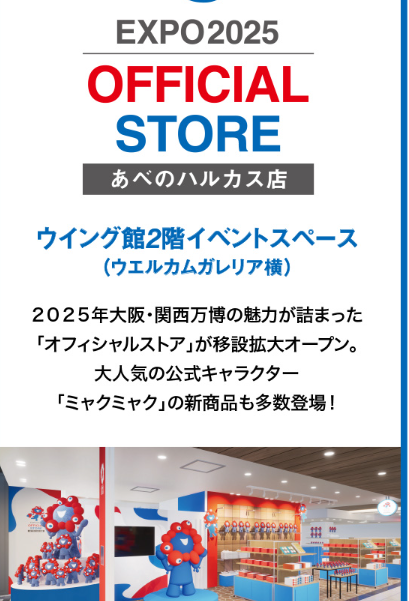 あべのハルカスの2階にミャクミャクグッズの売り場があるのと、ドンキとかでも普通に売ってるよ