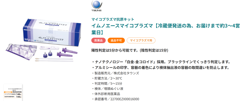 その理由として考えられることは、マイコプラズマ肺炎の検査キットは第2~3種の医療機器に分類されることが多く、日本では医師や医療機関向けにのみ流通が許可されています。