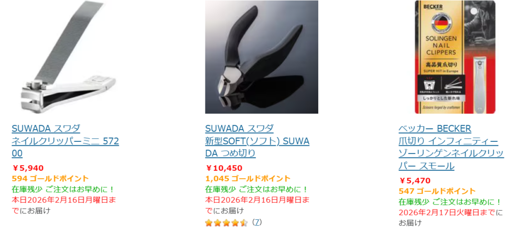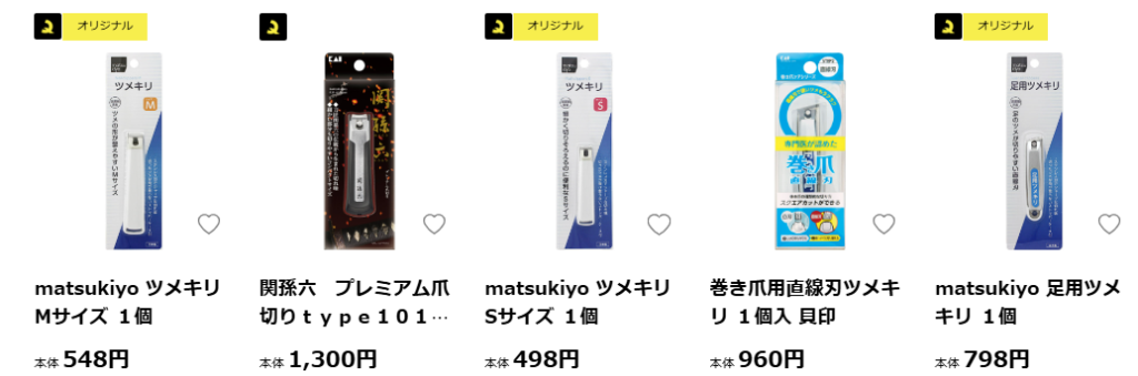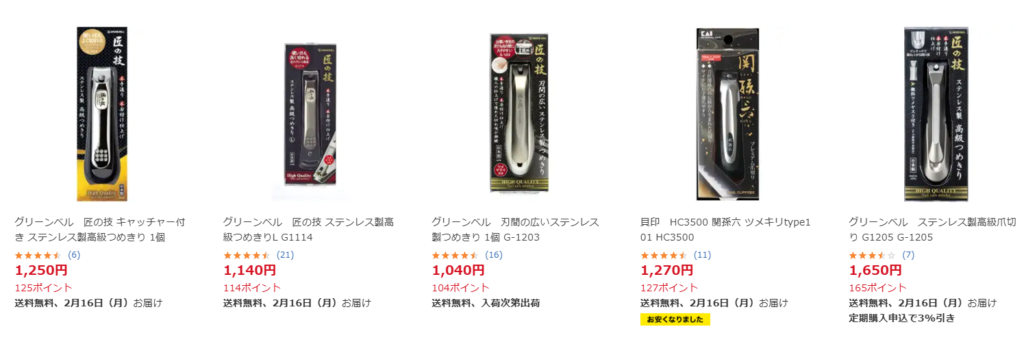 Yahoo!ショッピングでも爪切りがたくさん売っていました。