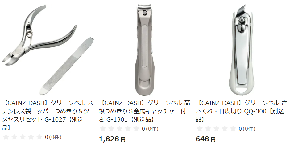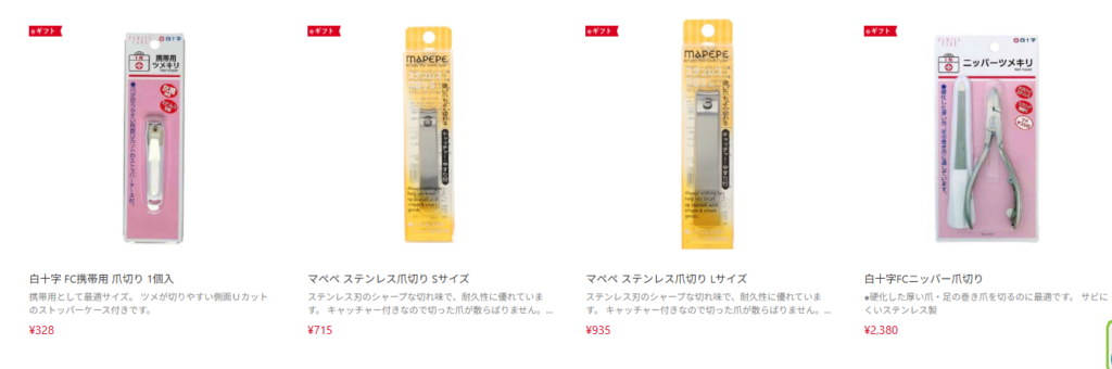 楽天市場でも爪切りがたくさん売っていました。