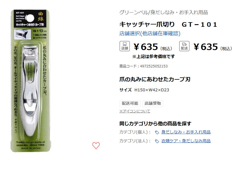 実際に手に取って刃の大きさやグリップを確認できるのが実店舗の強みですし、ついでに爪やすりや甘皮ケア用品もチェックできるのが便利でした。