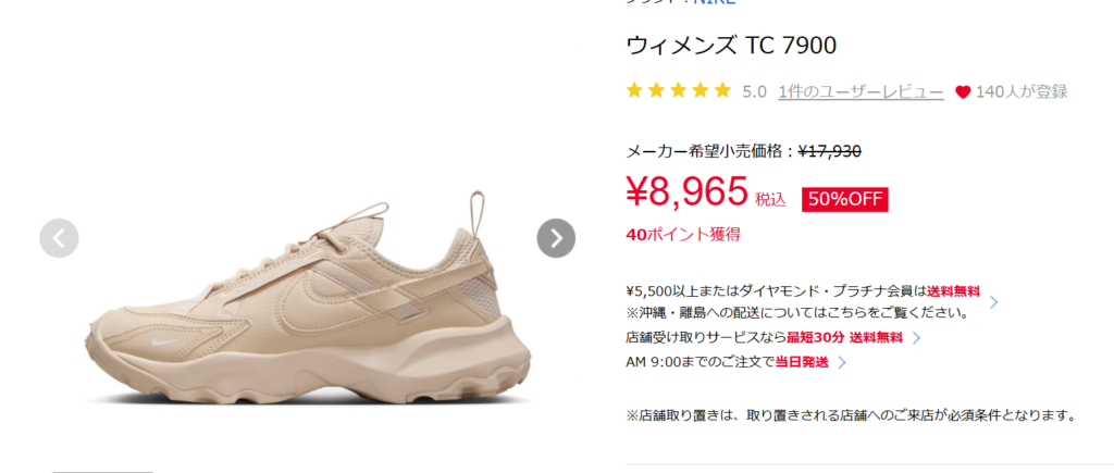 ZOZOTOWN(ゾゾタウン)にもナイキTC7900が売っていました!