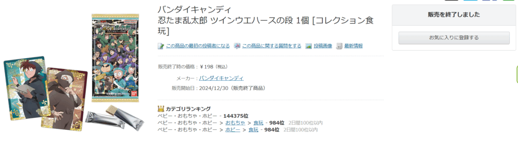 楽天ラクマにも、忍たまウエハースが売っていました!