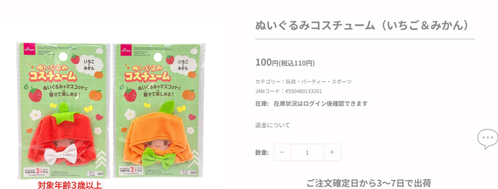 ドン・キホーテでも、ぬい服を見かけることがあります。
