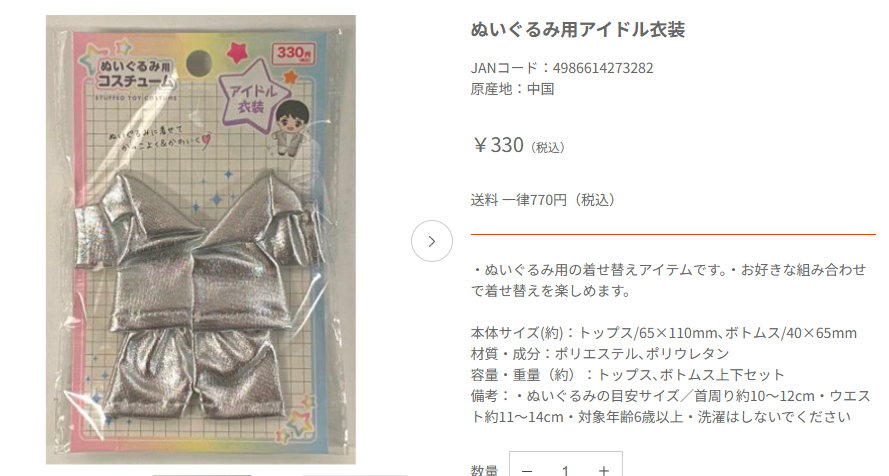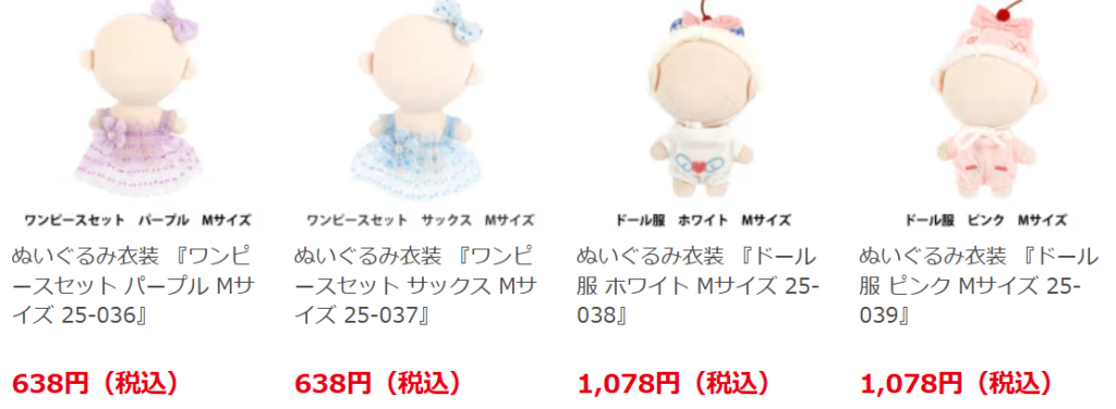 Yahoo!ショッピングにも、ぬい服が売っていました。