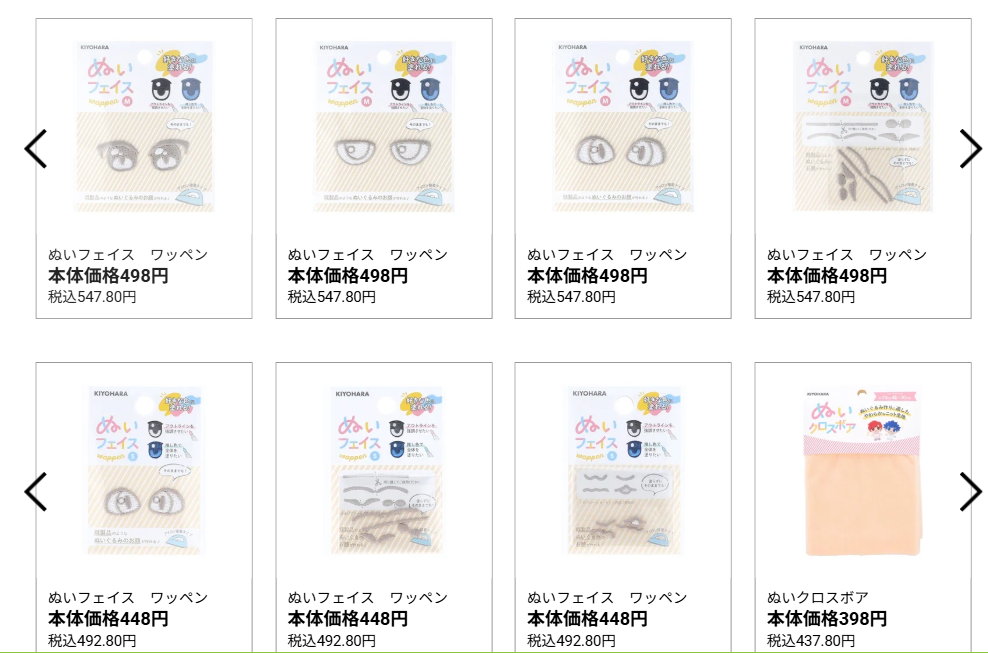 イオンには、ぬい服の完成品は売っていませんが、ぬい服を作るパーツがそろっています。