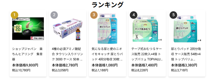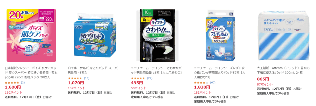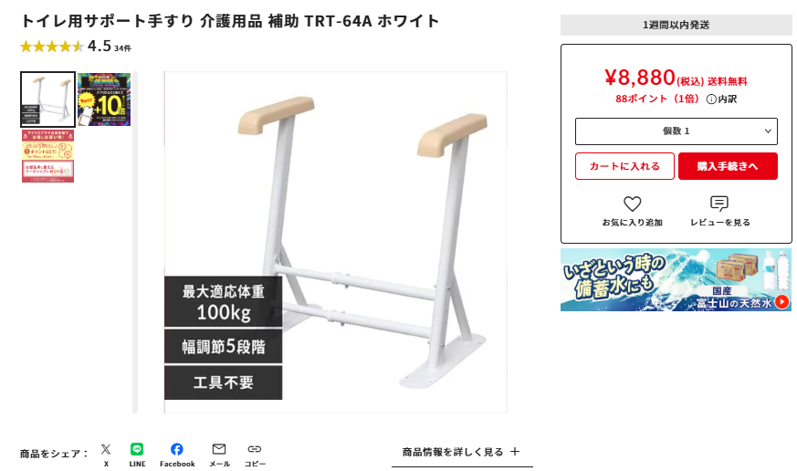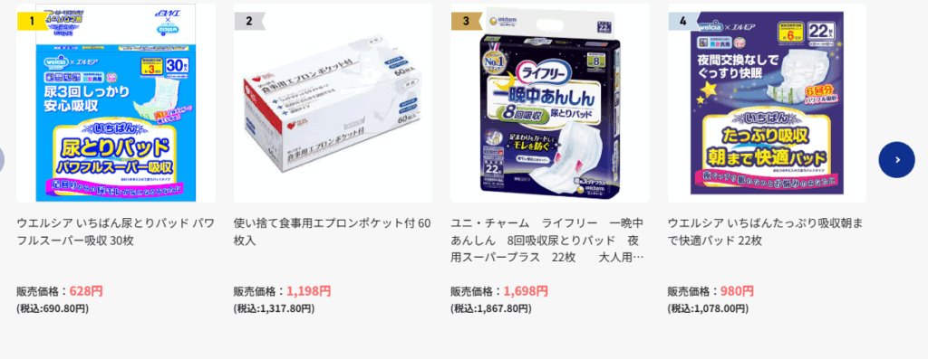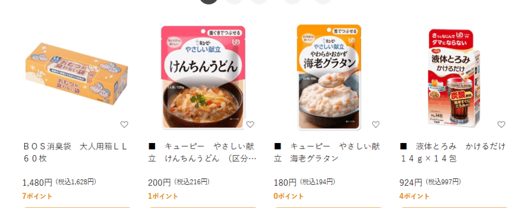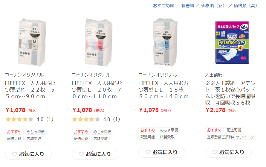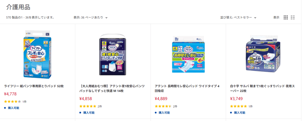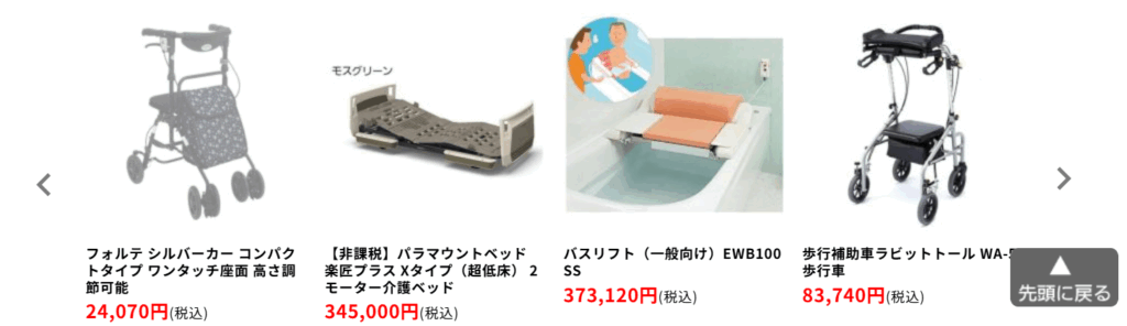 大型の商品も取り扱いがあり、これから介護が始まる方は何をそろえればいいのかもわかりやすいです。