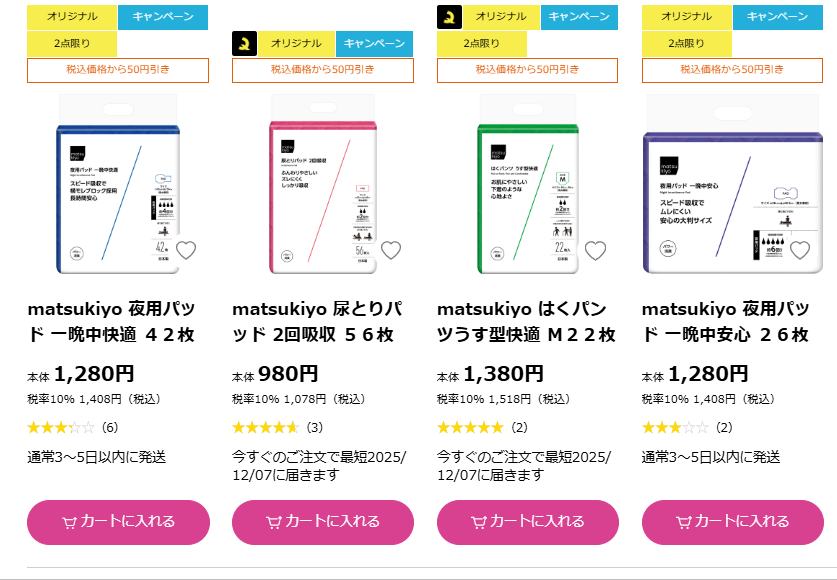また、自宅に届けてもらいたい、かさばる消耗品をまとめ買いしたいときは、通販サイトや専門通販ショップが便利。