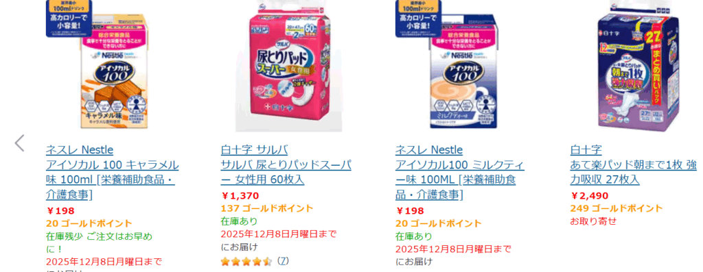 そして、選択肢を広げたいなら、Amazon や 楽天市場 などの通販サイトや、介護用品に特化したオンラインショップもチェック。