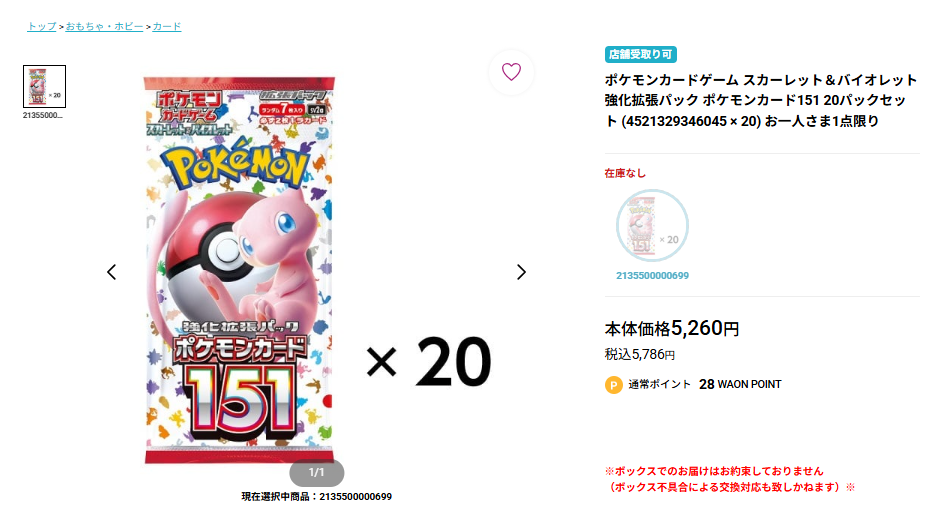 イトーヨーカドーにも、ポケモンカードが売っています。