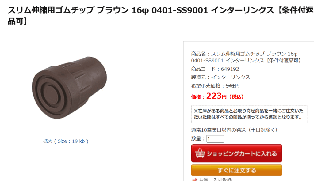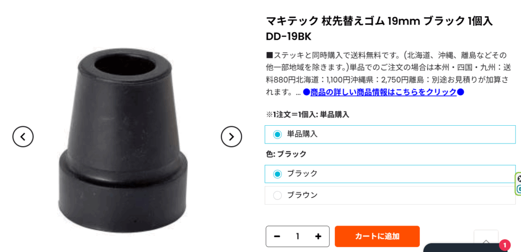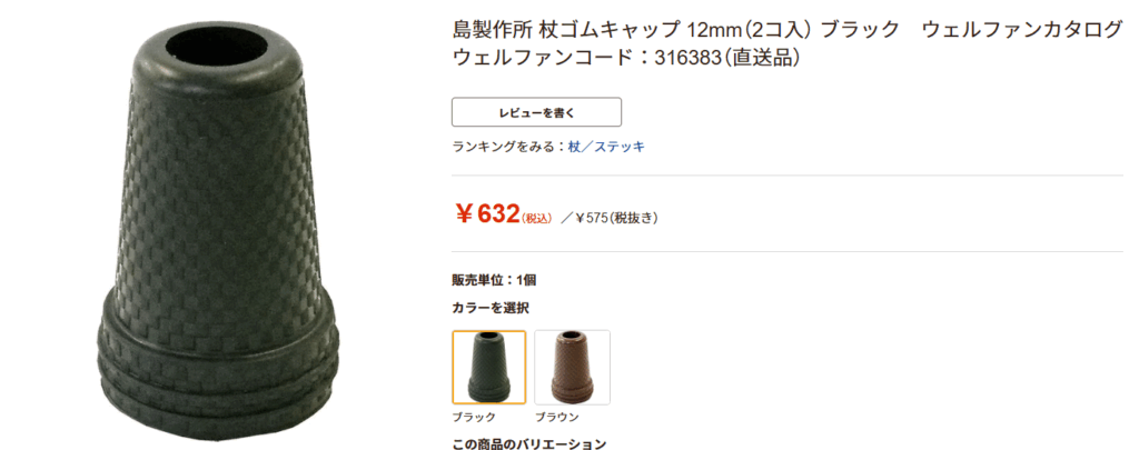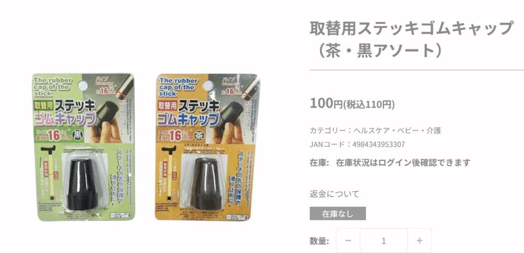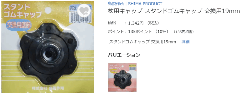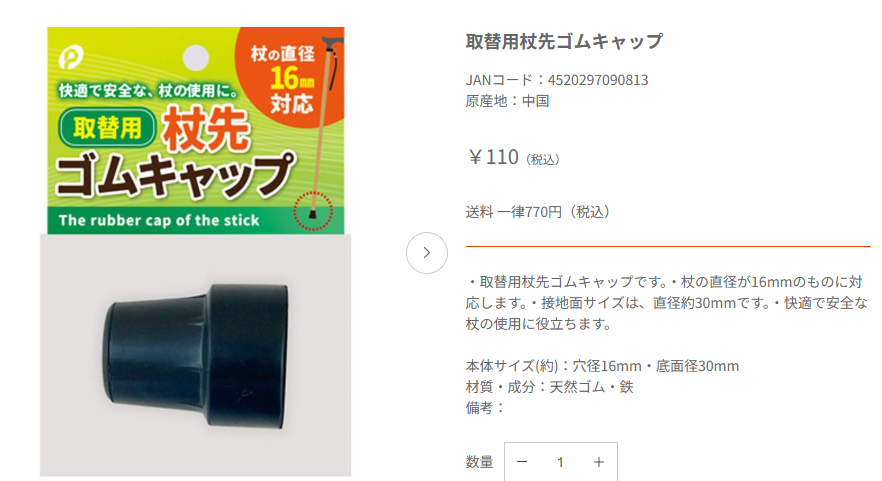 ハナサンテラスというオンラインショップにも、杖の先のゴムが売っていました!