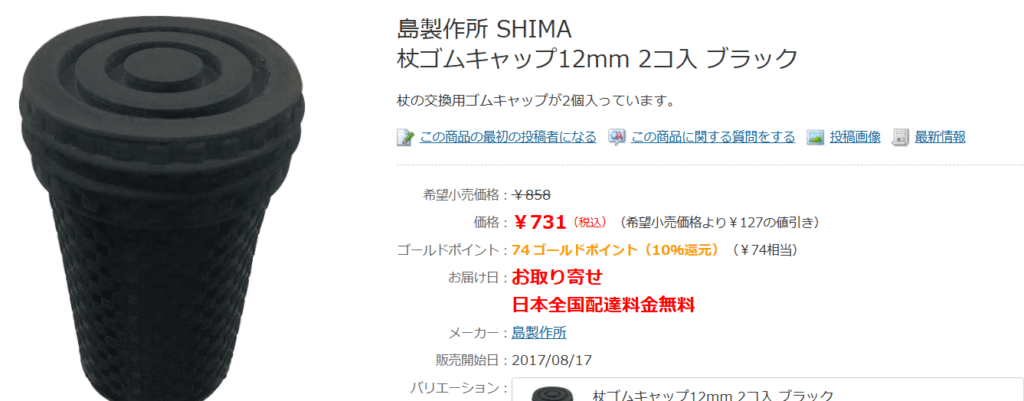 Qoo10にも、杖の先のゴムが売っていました!