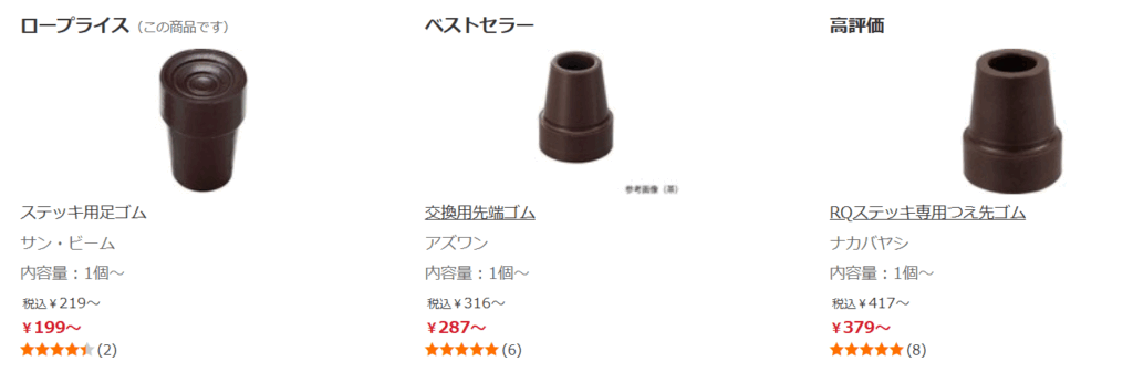 Yahoo!ショッピングにも、杖の先のゴムが売っていました!