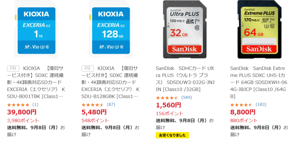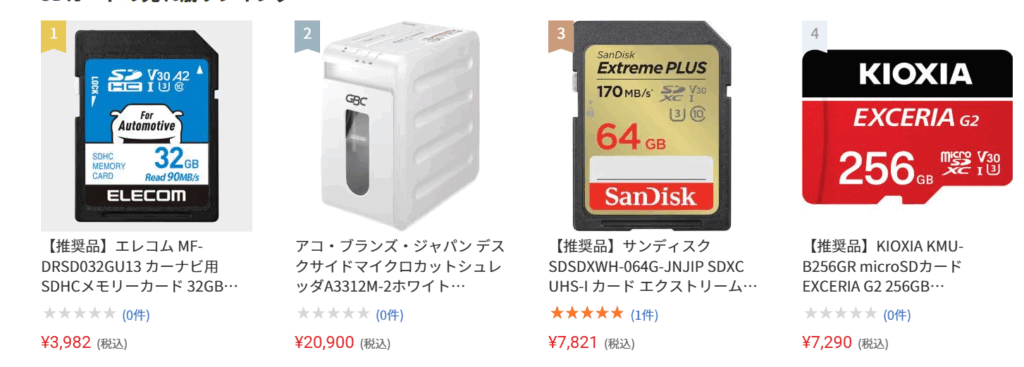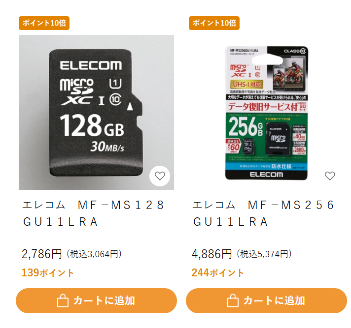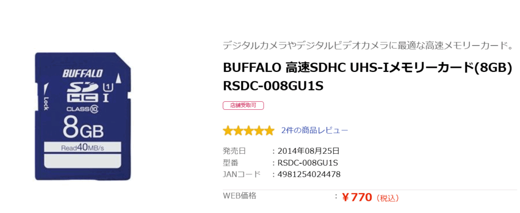 Yahoo!ショッピングにも、SDカードが売っていました。
