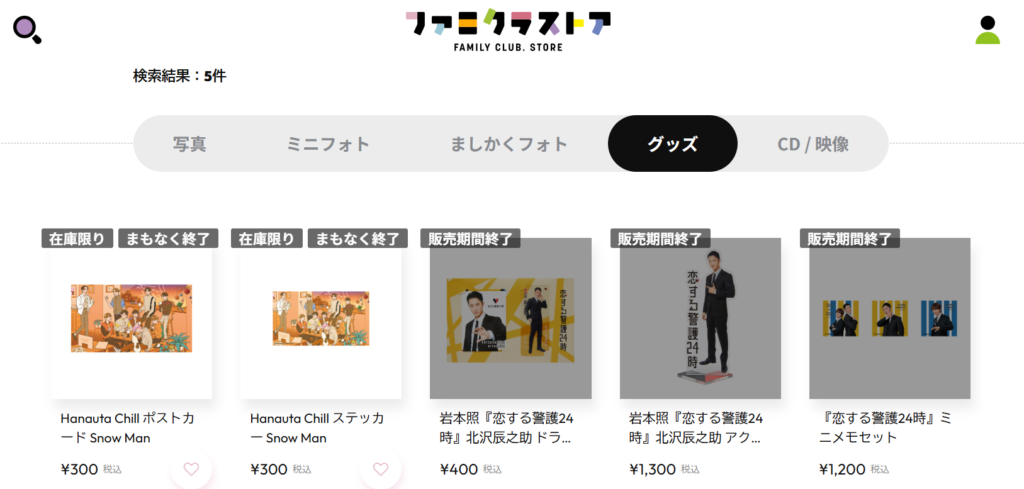 SnowManのグッズ販売を手掛けている「ファミクラストア」を調査しましたが、すのチルぬいぐるみは売っていませんでした。