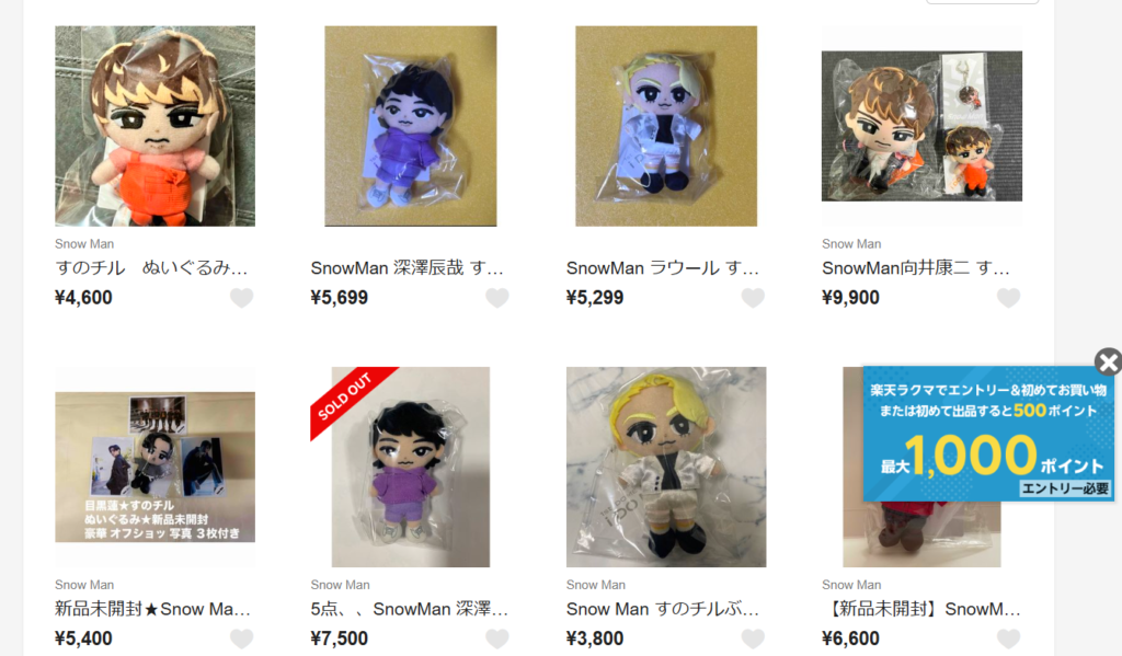 Yahoo!フリマにも、すのチルぬいぐるみが売っていますが、価格が定価よりも高いものがあります。