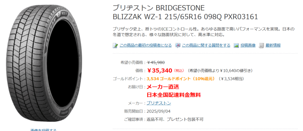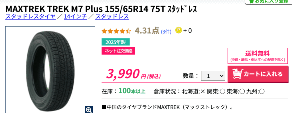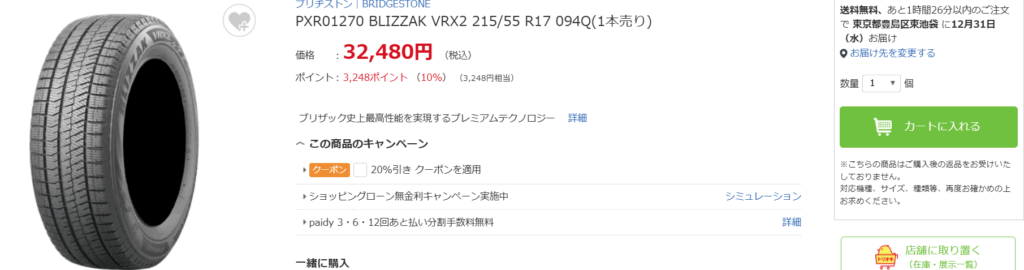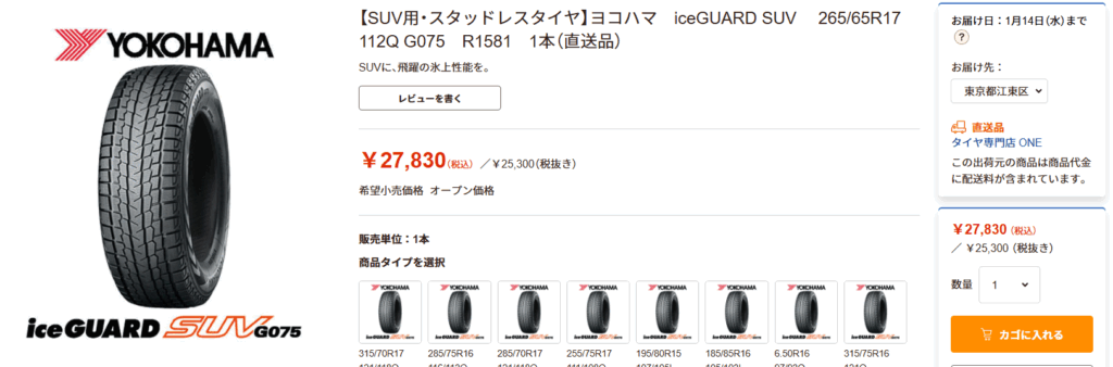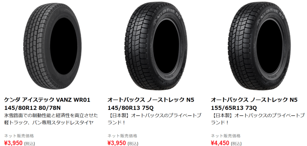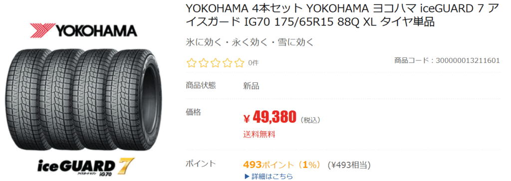 ヤフーショッピングにも、スタッドレスタイヤが売っていました。