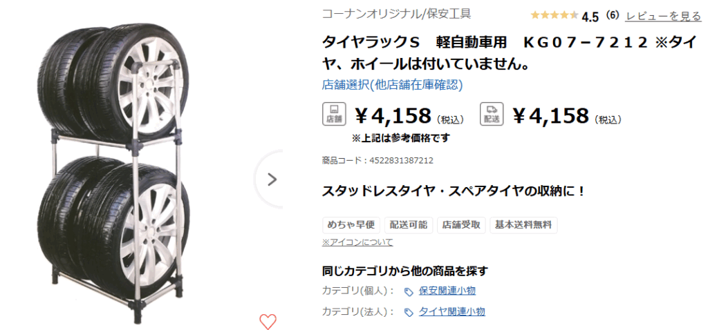 カインズにも、スタッドレスタイヤが売っていましたが、現在は販売休止となっています。