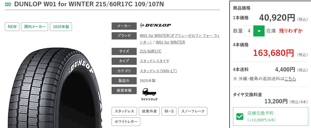 ライトコレクションオンラインにも、スタッドレスタイヤが売っていました。