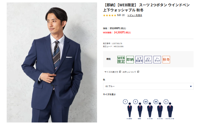 配送の早いAmazonなら、急ぎの方や急にスーツが必要になった方も安心して購入できますね。