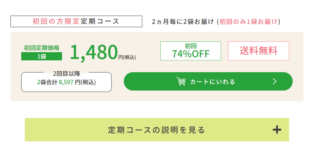 初回74%オフととてもお得に購入できるので、初めての方は一度公式サイトをチェックしてくださいね。