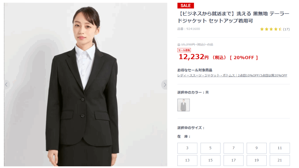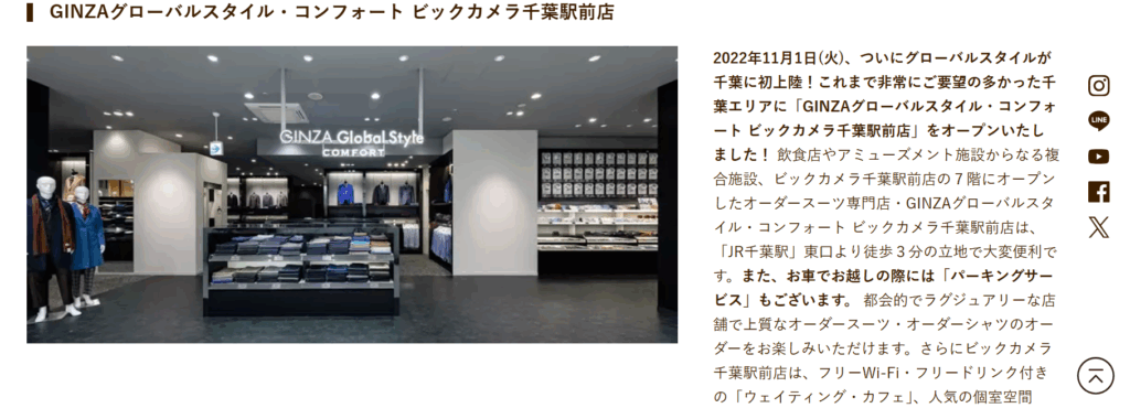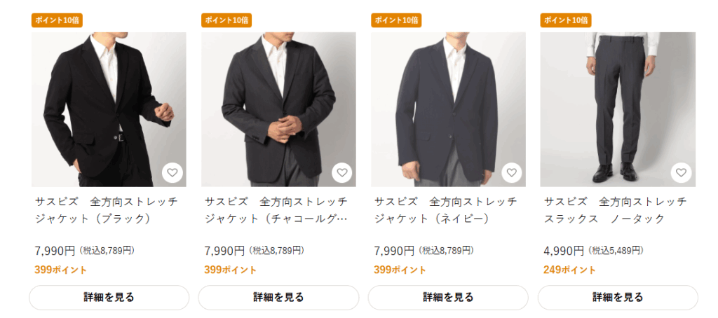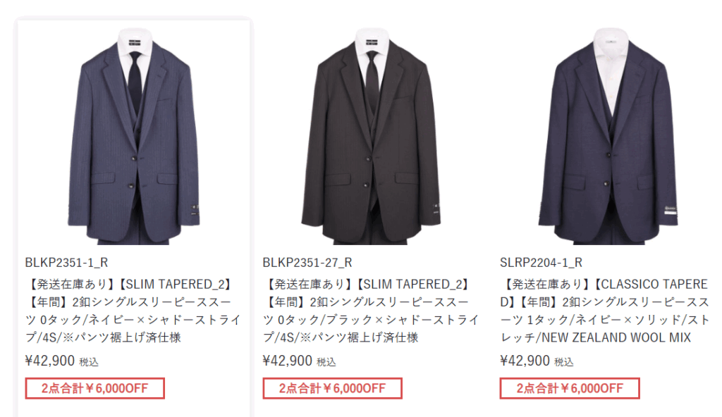 また、ビックカメラを調べていると、一部の店舗のみでスーツの販売をしているところが見つかりました。